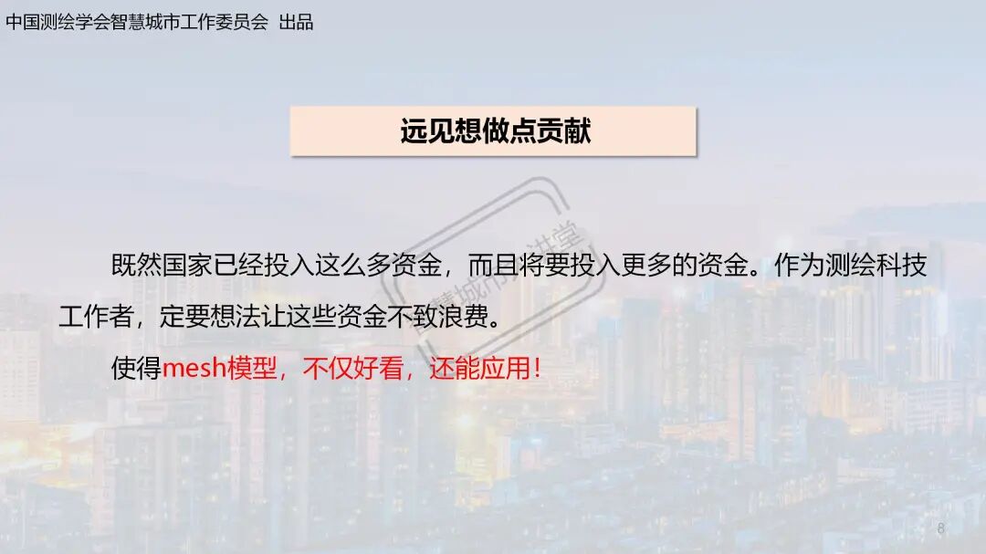 刘先林院士的报告,从实景三维建设中的mesh模型的渊源出发,讲述其发展过程及现状,并指出了当前大规模开展mesh建立中所存在的效率低、精度差、无结构、“好看不好用”等诸多问题。为了使mesh模型更好的满足用户测绘级需求,为用户所用,作为测绘科技工作者,定要解决上述问题。进而从实景三维建设中的各个环节,如基准的制定、数据获取、数据后处理等,提出了相应的建议或解决方案,并重点讲述了国产软硬件设备在mesh建立中的现状与优势,展示了最新的科研成果。