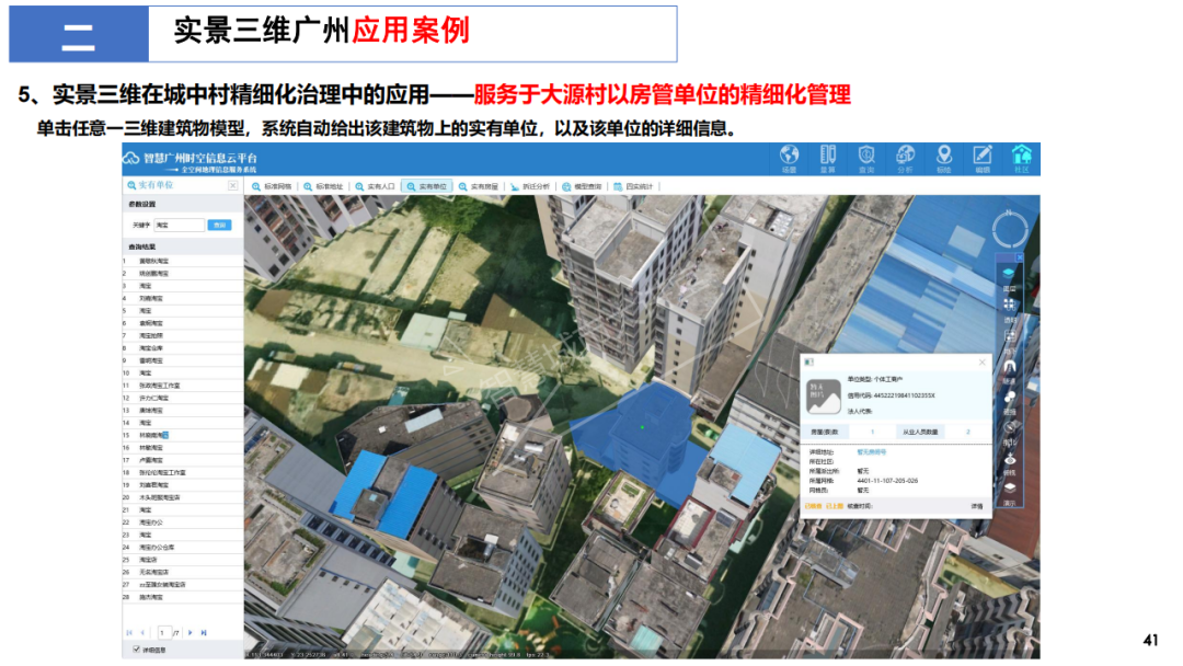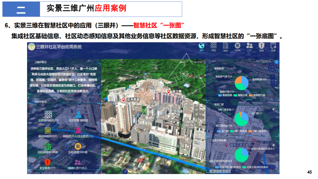 此报告首先以广州市为例,介绍全市域的三维地形地貌、地上空间三维模型(建筑物白模、三维精细化模型、倾斜整体化模型、倾斜单体化模型)、地下空间三维模型(地下管线数据、地下设施普查数据、地下人防工程数据以及地层地质数据等)、海洋河道三维模型等地形级、城市级实景三维建设初步成果。其次,以广州市为例,介绍实景三维在历史文化名城保护中的应用;以番禺区为例,介绍实景三维与游戏引擎融合技术;以白云区为例,介绍实景三维与物联网数据的融合;以琶洲街道为例,介绍实景三维在人工智能和数字经济示范区中的应用;以大源村为例,介绍实景三维在城中村精细化治理中的应用。最后,提出实景三维在数据采集、处理、建库及应用等方面的若干进展和思考。