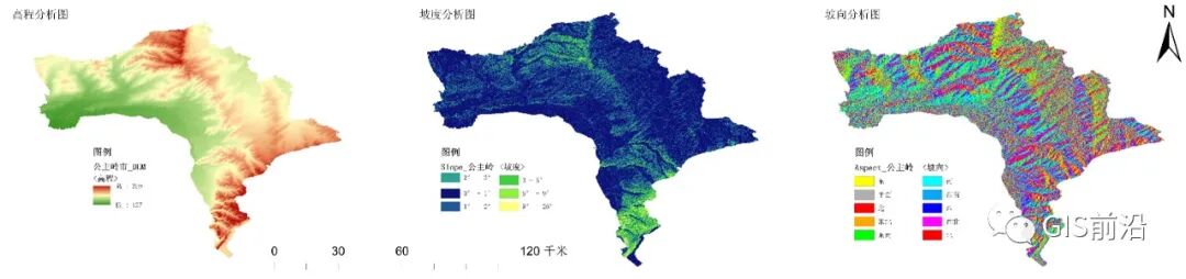 该工具会将一个平面与要处理的像元或中心像元周围一个 3 x 3 的像元邻域的 z 值进行拟合。该平面的坡度值通过最大平均值法来计算。坡度值越小,地势越平坦;坡度值越大,地势越陡峭。
