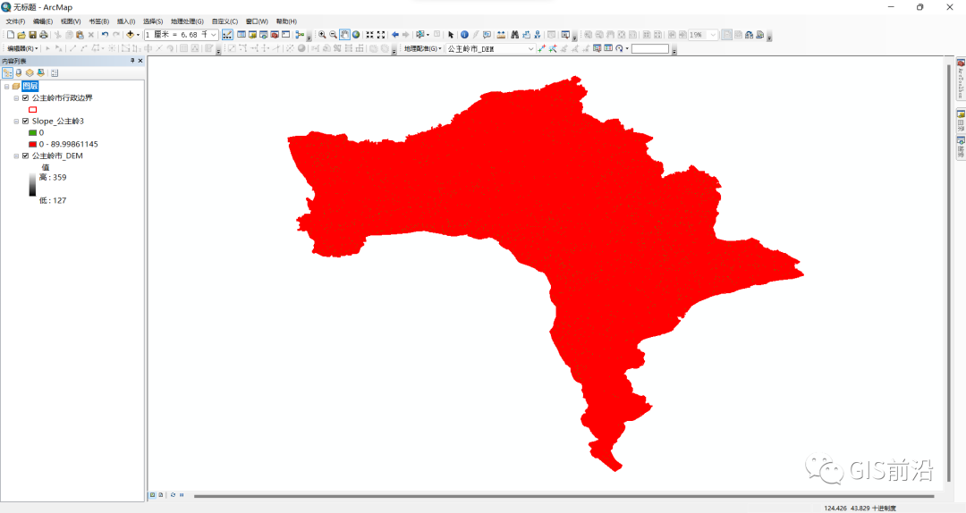 利用按掩膜提取工具对公主岭市数字高程数据进行裁剪。