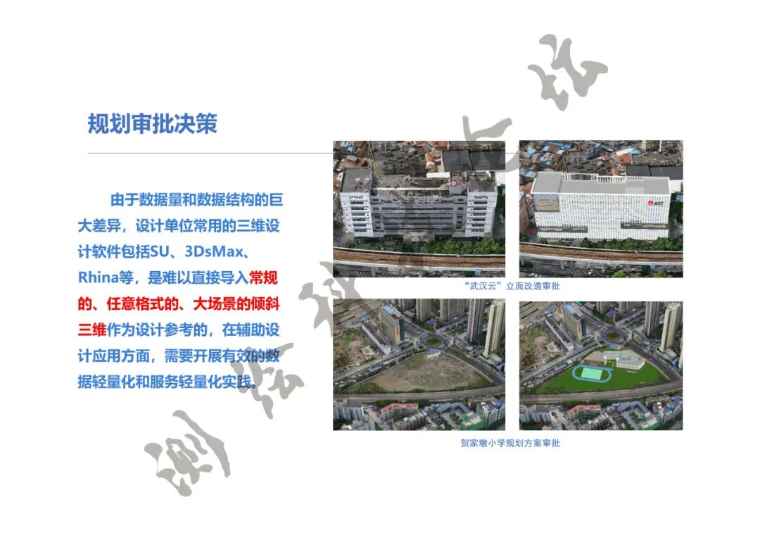 报告简介:本报告围绕十余年来实景三维武汉建设创新发展历程,介绍了生产的倾斜三维、模型三维、视频流全景地图等典型实景三维产品在技术、模式发展方面的创新升级,并面向武汉市城市规划、建设、管理的具体工作,探讨了城市建设发展各个阶段实景三维的需求,分析归纳了实景三维产品的应用模式,提出了实景三维建设在标准研究、产品生产、轻量化服务、广泛化应用的一些思考和认识,切实落实实景三维建设在“两支撑,一提升”工作定位。