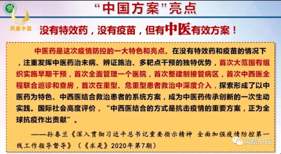 没有特效药,没有疫苗,但我们有中医的有效方案。这就是中国,我们必须有这点文化自信。