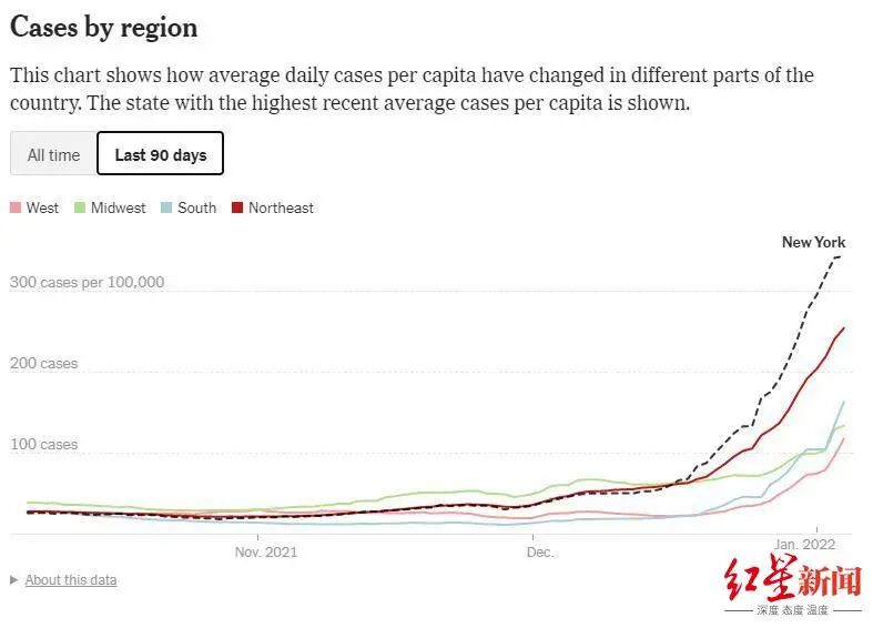 而据美国疾控中心(CDC)4日的统计数据,在近期的新增确诊病例中,奥密克戎毒株感染已占到了95%。而美国人口密度最高的纽约再次成为了“震中”。