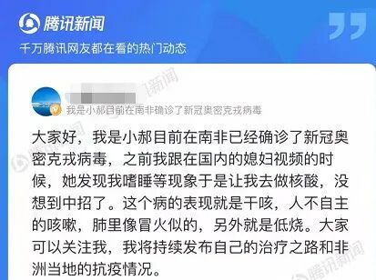 · 他在南非确诊奥密克戎:经唐人街一家中医馆中药治疗,目前低烧已退!
