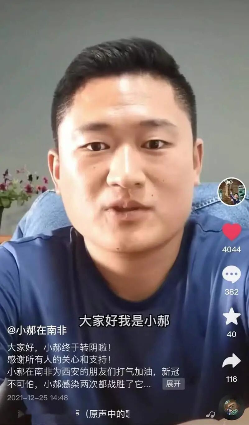 2021年12月,我们曾报道过一位中国小伙在南非确诊奥密克戎的新闻 (我在南非确诊奥密克戎:用中药在治疗,目前低烧已退)。1月4日,郝先生告诉记者,上个月24日他在南非当地医院检测显示,他的核酸检测结果已为阴性。