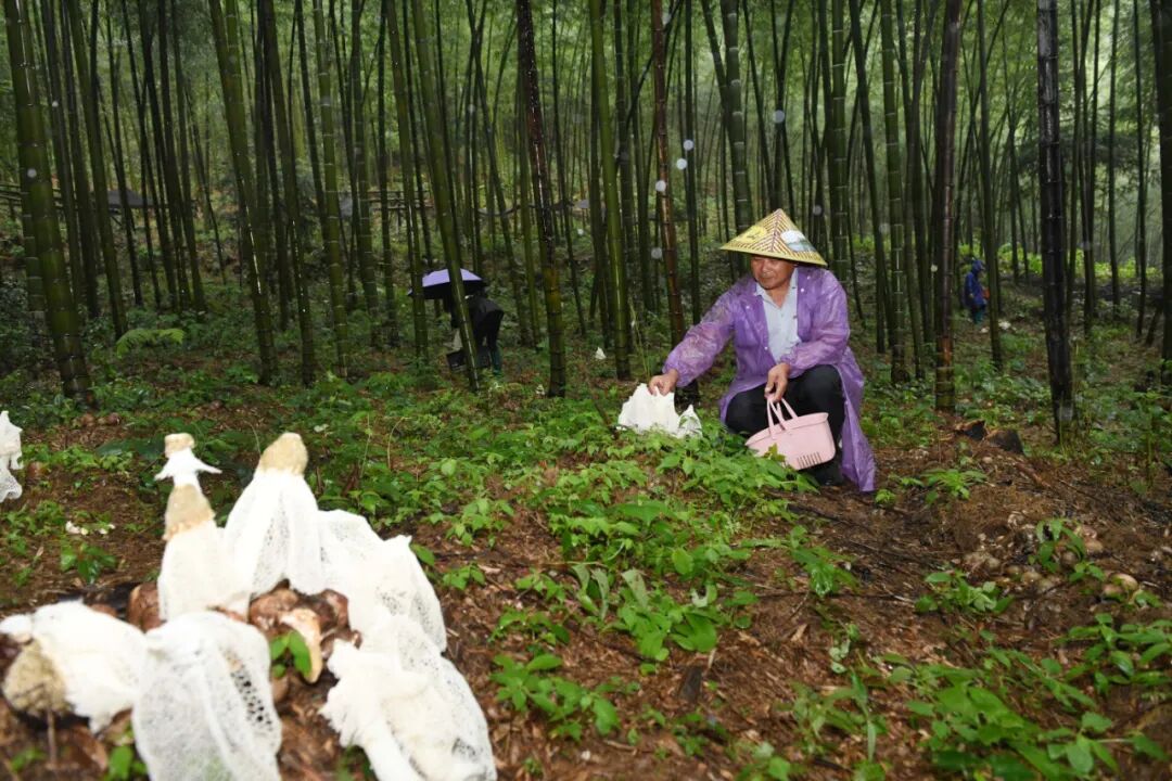“在丰产期,竹荪会以肉眼可见的速度生长。”花山林场负责人介绍,“在竹林下栽培竹荪,不仅能节约耕地资源、免搭建荫棚,采摘后的剩余物回归林地,还能增加林地的有机物质含量,改善土壤结构,从而实现林菌互利、资源循环利用,产生良好的经济效益和生态效益。”
