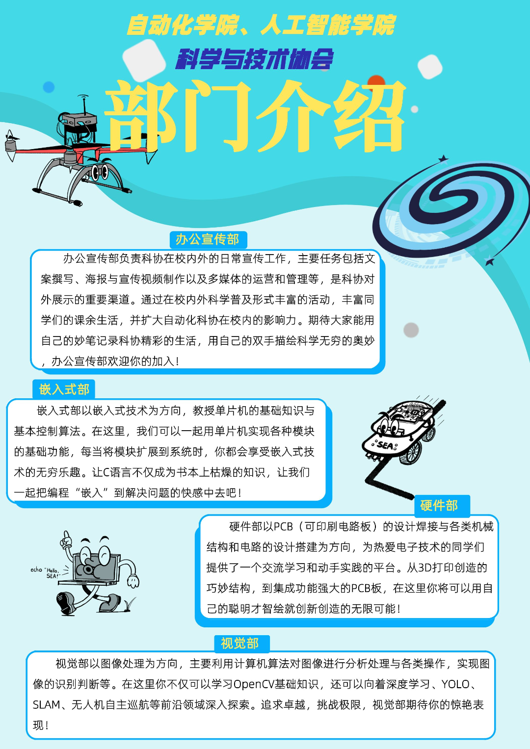 此前我们招新群已突破一千人,我们今天的招新工作更多的是为大家线下答疑解惑。我们也带来了校科协的特色成果作品,比如同学自主设计的获得了全国大学生智能汽车竞赛国家级二等奖的电子车等,希望大家大家从中可以感受到科协的魅力,欢迎大家的加入。
