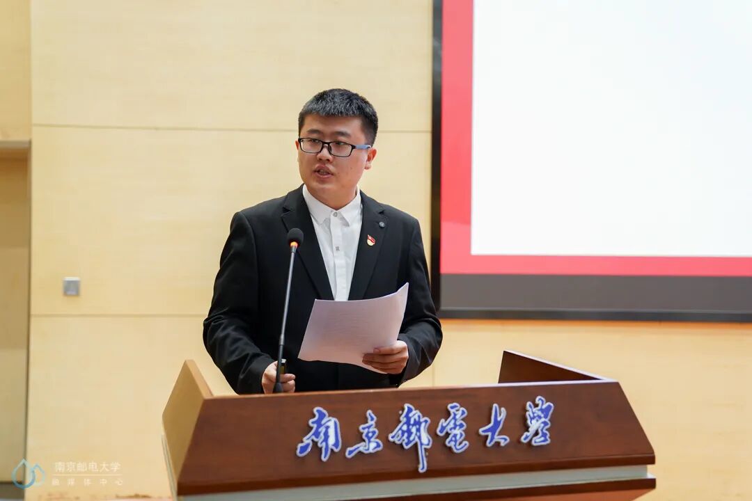 电子与光学工程学院、柔性电子(未来技术)学院2021级博士研究生马福晓代表该学院博士第一党支部发言。该支部于2021年8月入选全国高校“百个研究生样板党支部”,开展团日活动百余次,发表高质量学术论文120余篇。近年来,支部始终大力弘扬革命文化、红色文化,牢记科技报国初心使命,培养德才兼备的电子信息领域高端人才,在科研攻关、扶贫支教、创新创业、疫情防控等方面都起到示范引领作用。