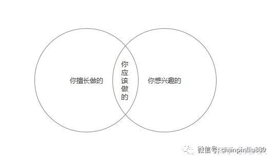 如上图:在你擅长的和你感兴趣的交叉部分就是你应该做的事情。