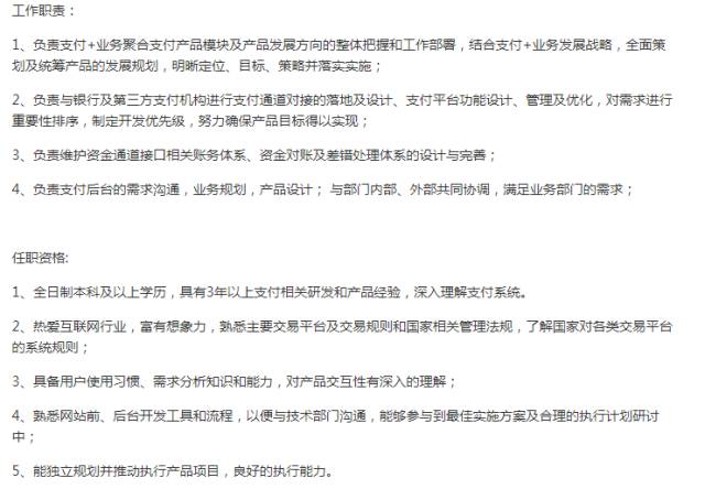 首先我从拉勾网上直接复制了当前产品经理的招聘工作描述,这里有一点要说明