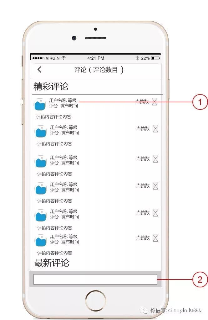 标注6:点击该图标,页面滑到最下部最新评论的地方展示。如果最新评论有评选内容,根据评论条数进行统计,图标展现形式如图所示,右上角有小红点出现。