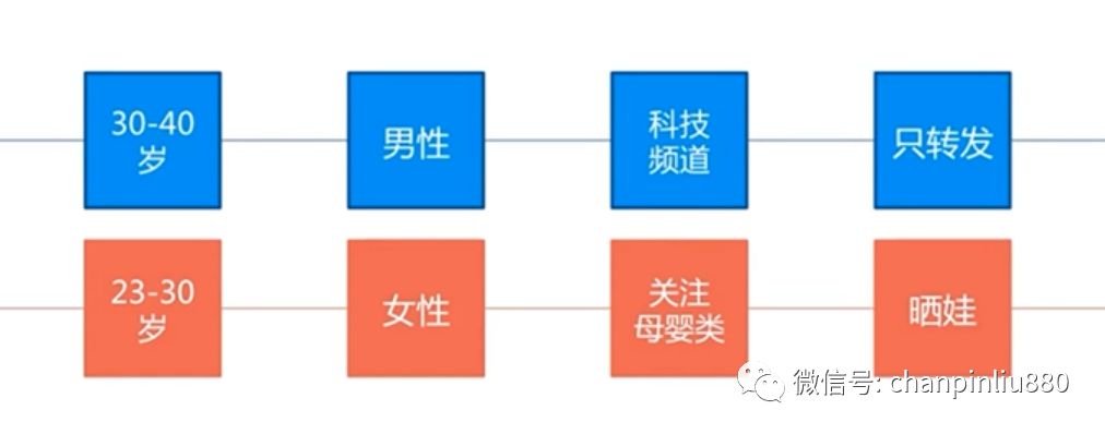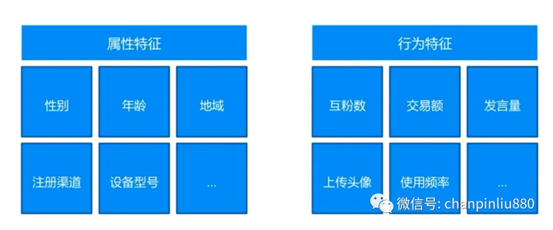 属性特征是用户天生自带的不可改变的属性,包括说年龄、性别、地域、注册渠道等等,有的时候不同渠道注册过来的用户会有着完全不同的行为习惯,这一点我们将会在后面的成长路径中给大家介绍,喜欢的小伙伴可关注微信公众号:chanpinliu880