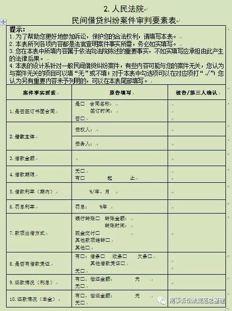 附:参考九类案件《审判要素表》