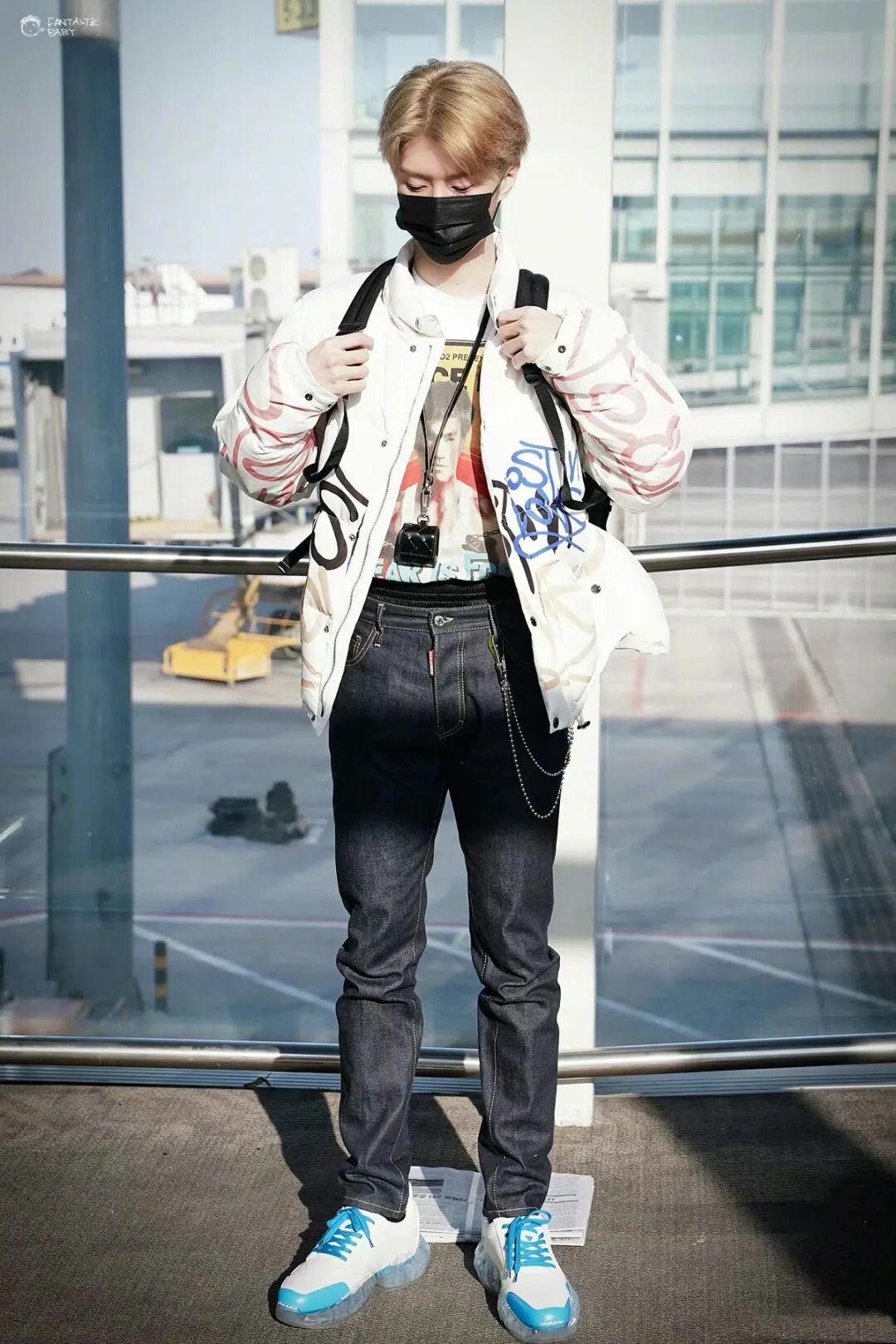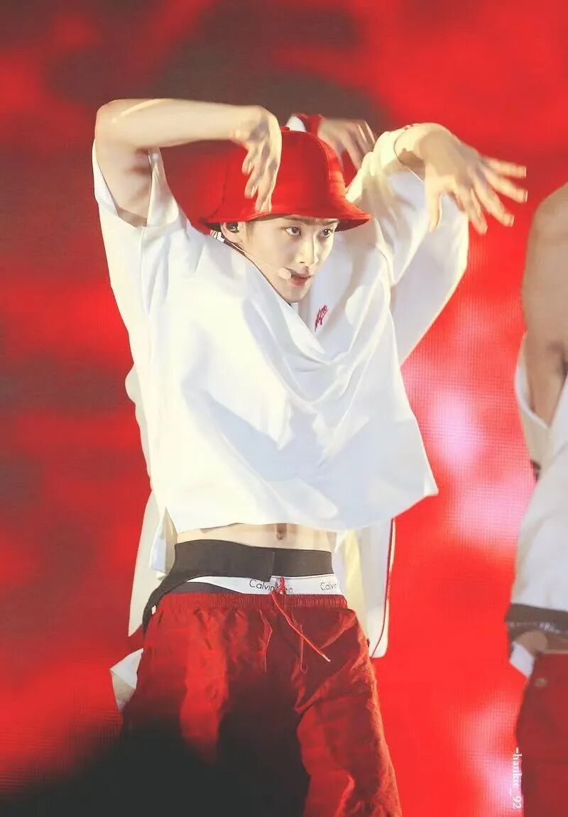 李敏亨的舞台造型也是流水的低腰裤+铁打的CK。宽松的白T搭配渔夫帽满满的街头风。不懂就问,穿CK不露内裤边难道违法么?