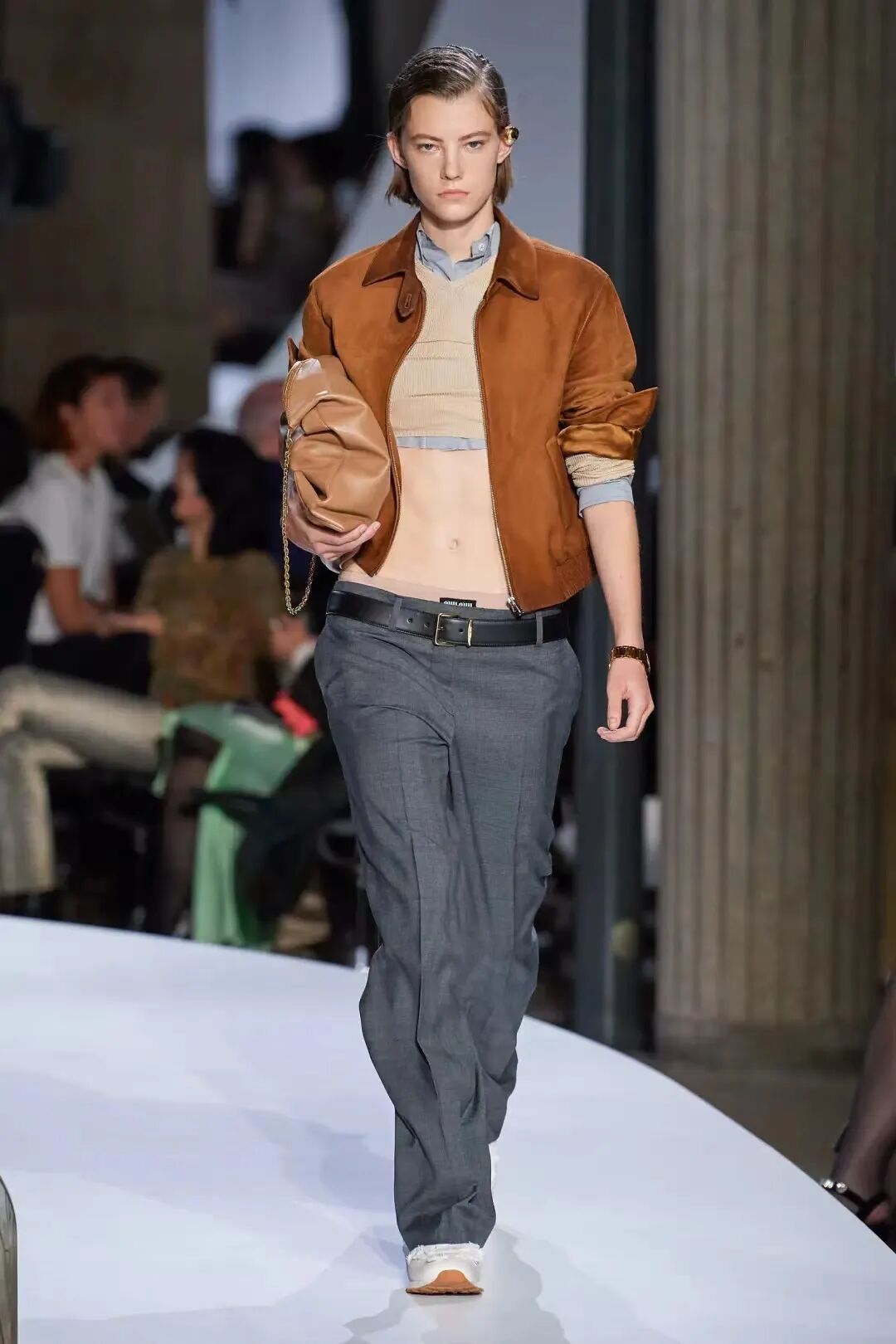 但从最近各大时装品牌的秀场可以看出,“衣衫不整”的风格已经不仅仅出现在女装秀场,隔壁男装秀场也越来越节省布料,甚至秋冬系列依旧势头不减。