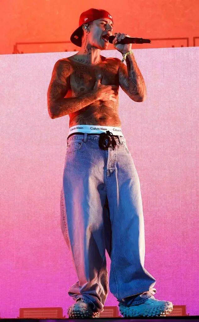 如果说Hailey Bieber是女生尝试低腰裤的穿搭模板,Justin Bieber就为男生怎样穿低腰裤提供了思路。