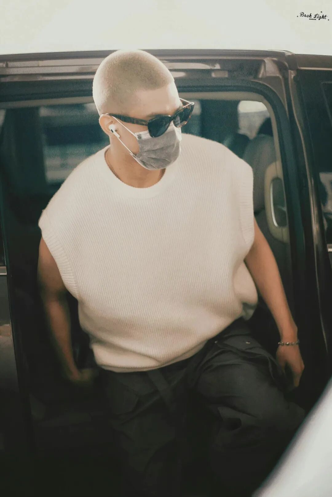 其次,背心的材质也很有讲究。米卡虽然只是选择了基础款式的纯色背心,但针织材质也会让单品的质感迅速提升。与硬汉风格不同,针织材质让整体造型更加温柔。