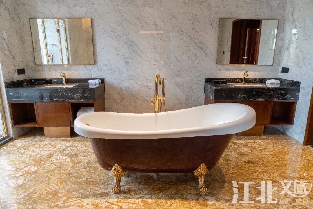 房间配有高档卫浴,还贴心为住客提供奢华定制的金丝楠木提炼精油洗浴用品、柔软丝滑的棉质浴袍......体验舒适度拉满!