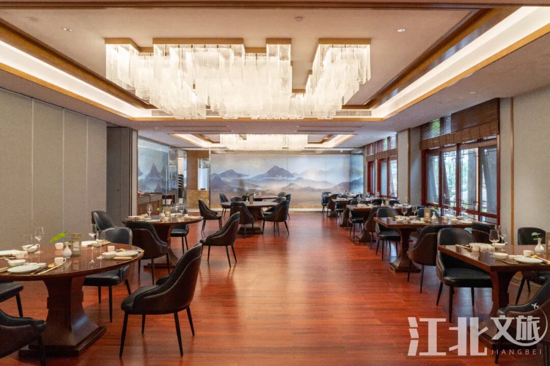 除了大堂和房间,酒店里的其他区域也融汇了不同程度的中国元素。用餐区域以名贵的瓷板画作为装饰物,在暖光灯烘托下营造出优雅的用餐环境。