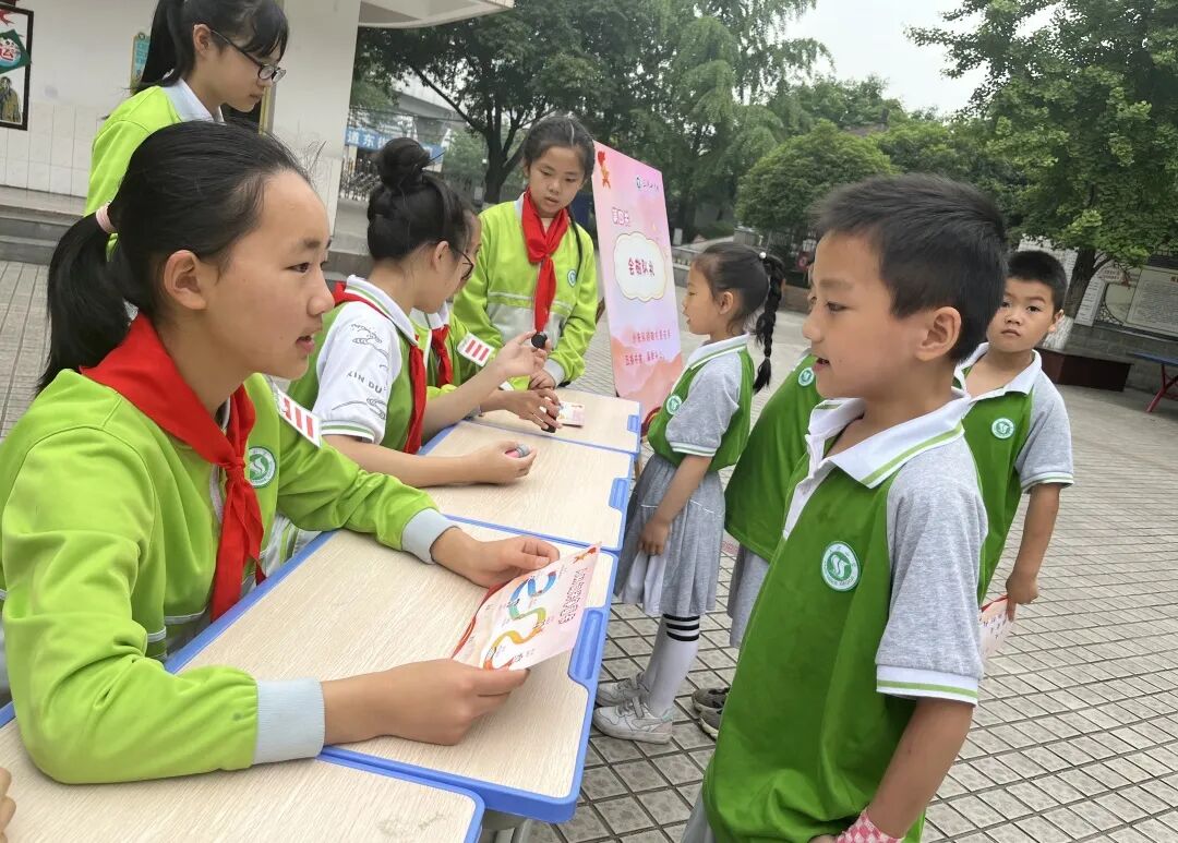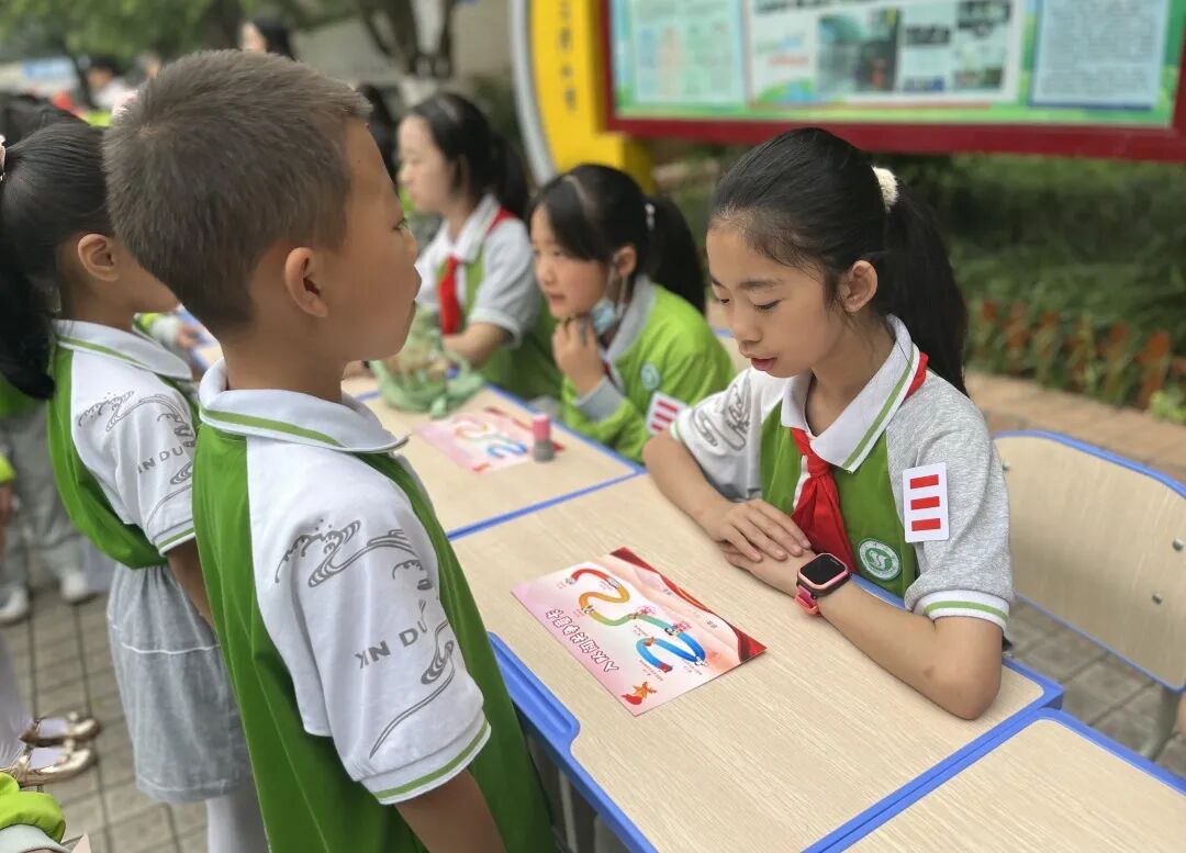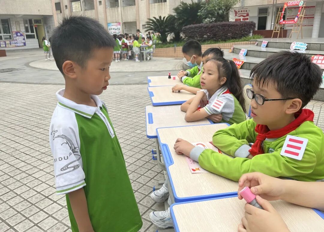 本次闯关嘉年华由学校大队委担任“考官”,共设八关,每过一关,即可得到“红星章”的通关奖章。准队员们信心满满,手持闯关卡,对每一关都充满期待。