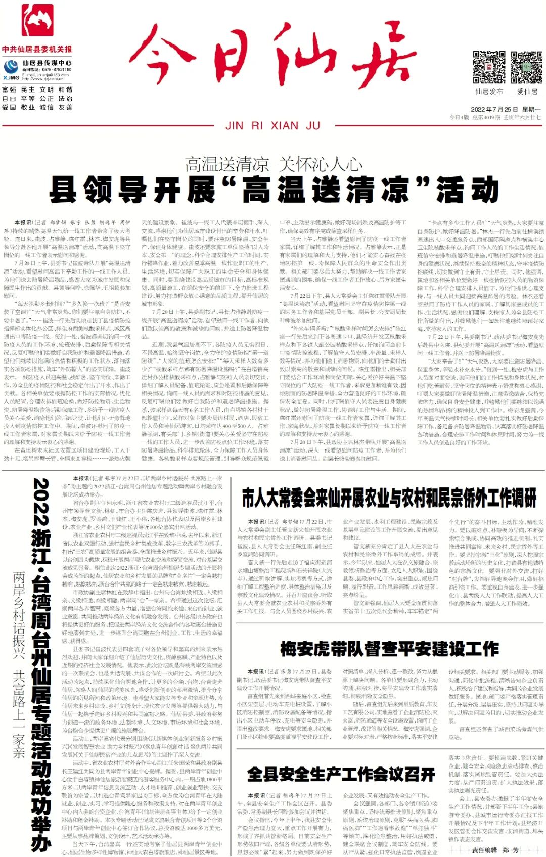 《今日仙居》头版要闻