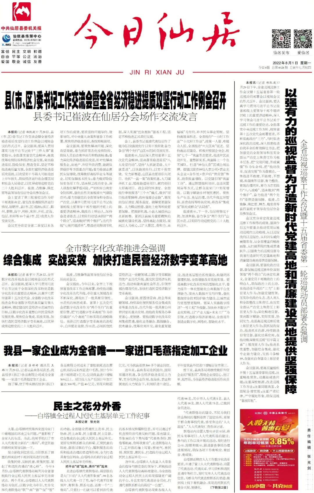 《今日仙居》头版要闻
