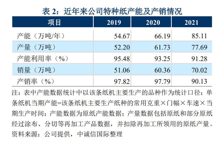 如果只看食品包装纸,五洲特纸产能最大,2021年产能78万吨(其中50万吨2021年12月投产),行业排名第一。