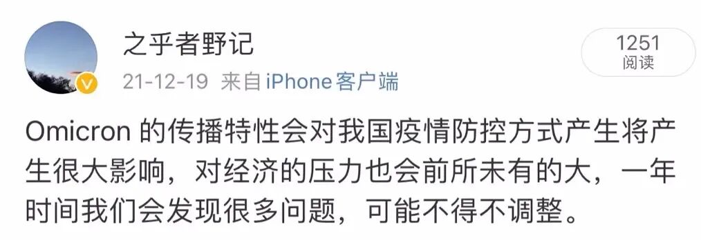 2020年4月1日《全世界都在“全体免疫”,中国该何去何从?》2020年4月18日《美国:离群体免疫越来越近,离中国越来越远》2021年1月4日《轮胎、零件、包装,冷链......如果新冠病毒无处不在,中国该何去何从?老百姓该怎么办?》2021年7月1日《我们不可能永远把新冠病毒拦在国门之外》2021年7月1日《全世界都感染完奥密克戎,我们该怎么办?》