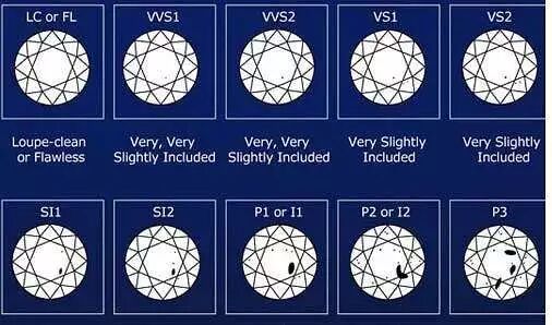 钻石净度从高到低被分为I3、I2、I1、SI2、SI1、VS2、VS1、VVS2、VVS1、IF、FL等11个级别,性价比最高的是SI(微内含)和VS(轻微内含)级别,它们的瑕疵在10倍放大镜下才看得见,还比IF、FL便宜许多。