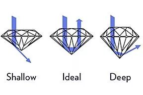 钻石切割过浅光芒会从底部流走、切割过深光芒会从旁边流走,未达到高级别切工等级的钻石,即使质量上乘,看起来仍然可能黯淡无光,我们在选择钻石时一定要买最好切工(EXCELLENT)的。另外,抛光、对称也会影响钻石的光彩,这两个也一定要EXCELLENT。