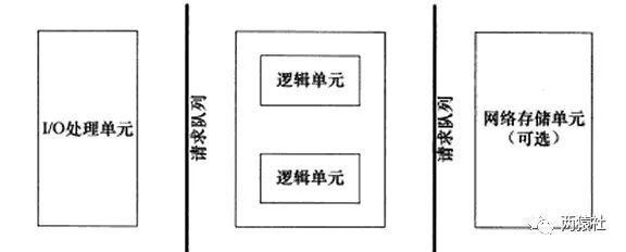 主要由I/O单元,逻辑单元和网络存储单元组成,其中每个单元之间通过请求队列进行通信,从而协同完成任务。