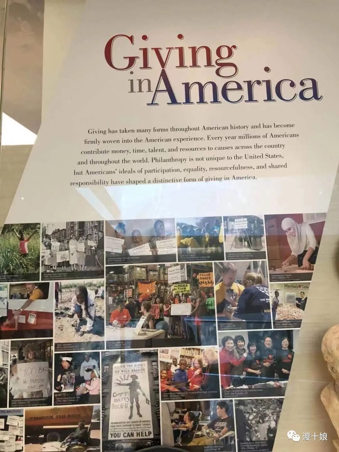 美国的历史博物馆也留了很大的篇幅关于国民的乐施好善,唐人街的慈善活动也榜上有名,宣传画就是“请捐一碗饭”,我还看到多年前曾经参加公司举办的一次habitat活动项目也在宣传栏里,这是一个历史悠久的慈善活动,号召手脚利索的人利用空闲时间,帮助头无片瓦的穷人盖房子,公司搞团队建设,去给穷人盖点房,就是最好的团建,想起当年的经历,但愿我们这些三脚猫,当年给穷人搭的棚,抹的墙,没有漏风漏雨。