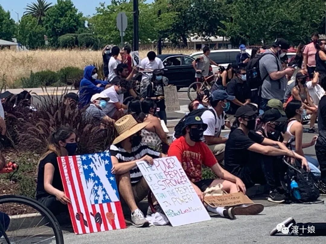 停好车,一出来,就听见了口号声。游行的主队出现了,口号声很整齐,响亮:“ BLACK LIVES MATTER!(黑命也是命)” “我不能呼吸!” “我们不能呼吸!” "别开枪!” 的口号声此起彼伏,让我意外的是,这些声音如此年轻,特别清亮。他们中,20-35岁的年轻人占至少80%,也就是我儿子的年龄,让我很感动。人年轻的时候,如果没有一点理想主义,没有一点“傻”,是可悲的——这话我同意。