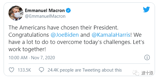 马克龙、约翰逊、默克尔、小土豆、莫迪都祝贺拜登了。