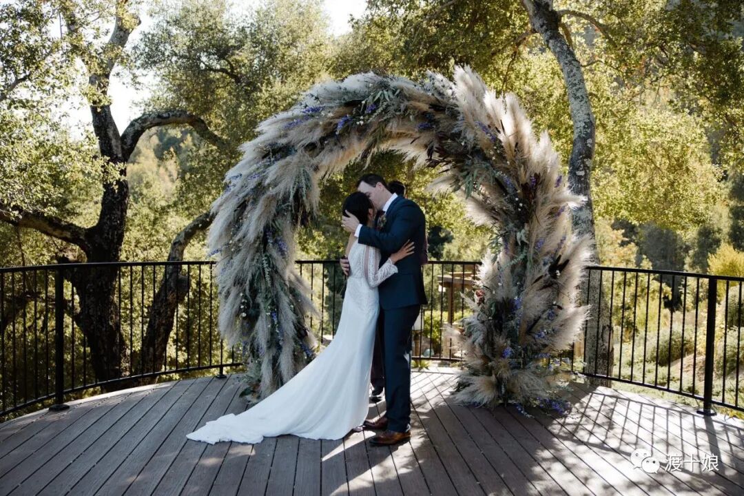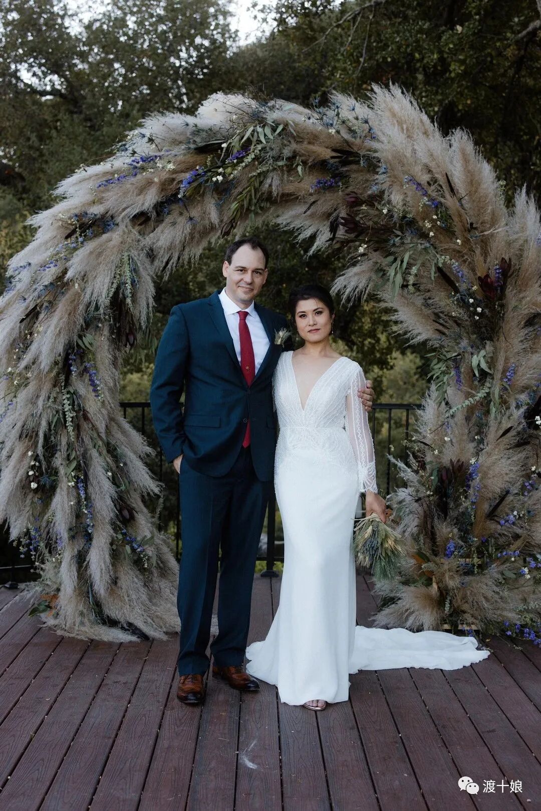 规模虽小,女儿和Anthony还是精心准备了婚礼,仪式感极強。他俩专门请人扎了一个大大的蒲苇和鲜花交织的拱门型花环,并准备了鹅肝,魚子酱,香槟等各种美食和好酒。