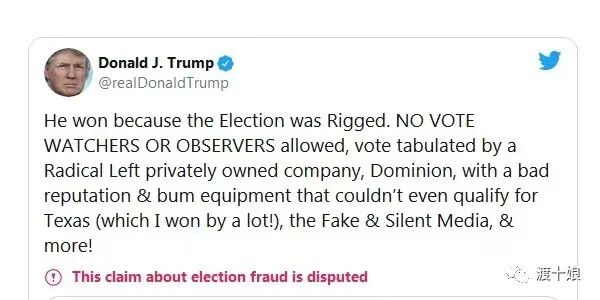 美国2020年总统大选,时至今日,应该说尘埃落定,特朗普总统输了。在正常程序范围内,再无翻案可能。就连他自己,也在11月15日的一串推特中,似乎承认了失败,算是第一次承认吧。特朗普说:拜登赢了,因为选举被诈了。