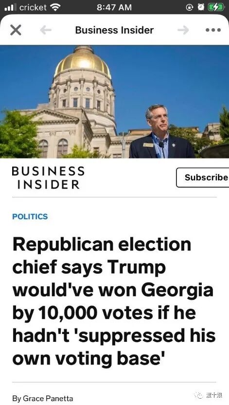 虽然是大致估计,但还是有现场实证。负责本州选举的乔治亚州务卿(共和党人)说:特朗普反对邮寄投票,结果压制了自己的基本盘。他估计有24,500名共和党选民因此没有投票。按霍尔教授的结果推算,特朗普失去的票数要更多些。这位州务卿应该只计算了登记的共和党选民,他大概没有算投了特朗普的中间选民资料。