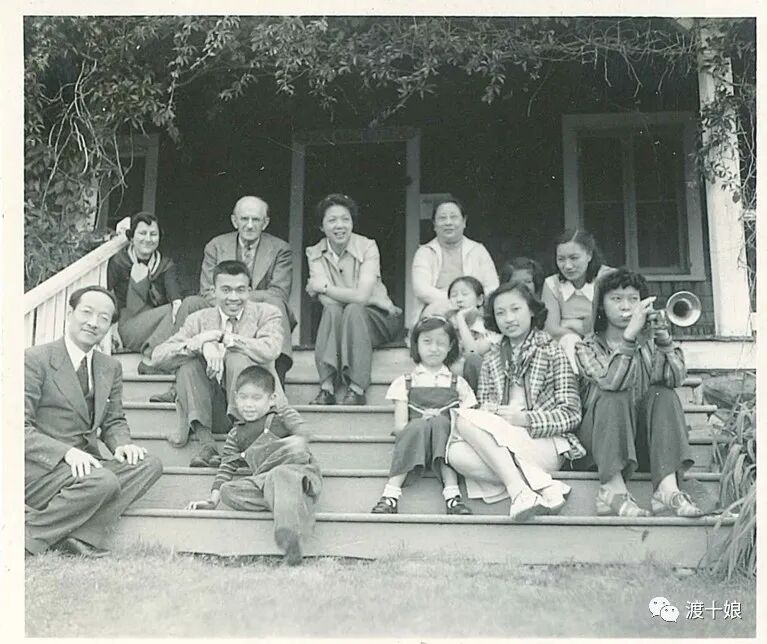 1940年在康州纽黑文,(左4)杨步伟,(前左1)赵元任,(前右1)赵如兰,(右2)赵新那,(右三)赵来思,(来思后)赵小中。(网络资料图片)