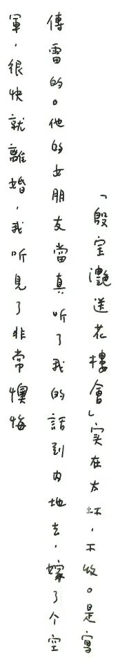 小说带了张爱玲一贯的戳刻气质。文章的最后殷宝滟说,“不过你不知道,他就是离了婚,他那样有神经病的人,怎么能同他结婚呢?”