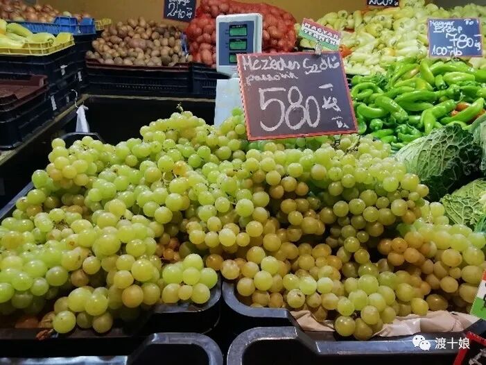 来这里之前,就有人推荐布达佩斯的大集市(Great Market Hall)。它坐落在佩斯南边靠多瑙河的一个闹市区里。虽然和伊斯坦布尔的“大巴扎”比小巫见大巫,它也算布达佩斯最大的室内大卖场,下层有各种蔬菜鲜果鱼肉摊位和小吃,上层则是一个小商品市场。我比较了一下这里的蔬果肉类的价格和美国的差异。三千弗林 (约十美元) 左右一公斤牛肉相当于五美元左右一市斤,应该说比美国还要稍贵一些。蔬菜和水果则比美国便宜不少,葡萄一斤三百弗林(一美元)不到(见下图),有些蔬菜在美国要卖到三美元一磅(还不到一斤),在这里只要一美元一斤。总之匈牙利人的菜篮子还是很丰富,价格高不高,还要看收入水平和百姓的购买力。