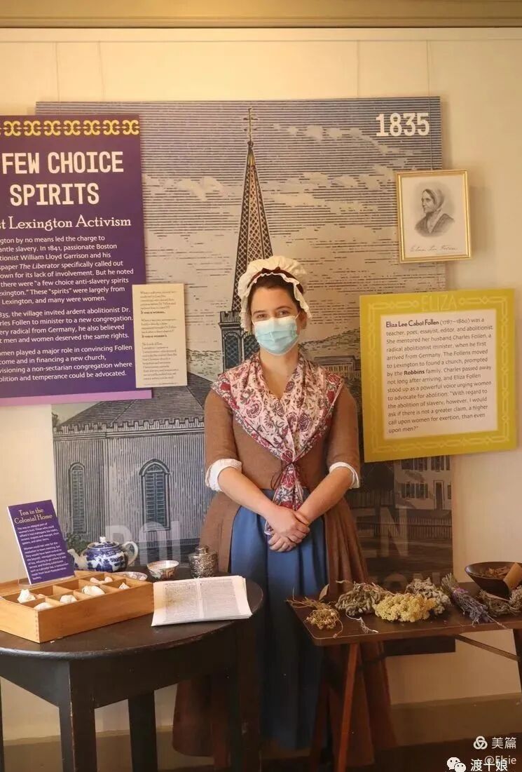 莱镇历史协会项目经理Sarah展示殖民期间新英格兰地区用于替代茶的本土植物