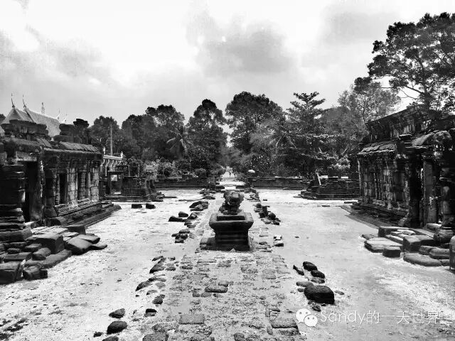 2007年11月我去暹粒的时候,正值雨季快要结束、旱季到来前。因此,每天偶尔还会下一阵雨。有一天正好在巴空寺(Bakong)参观的时候,突降大雨,我无处可躲,只能在入口的石头大门下躲着,周边一个人也没有,看着眼前已经残缺的这些石块,突然觉得这场景特别的熟悉。于是,很奇怪的,过去这近十年,时不时做梦会做到下图中这个场景,我想大概是我前世的灵魂在召唤我回去看看吧。