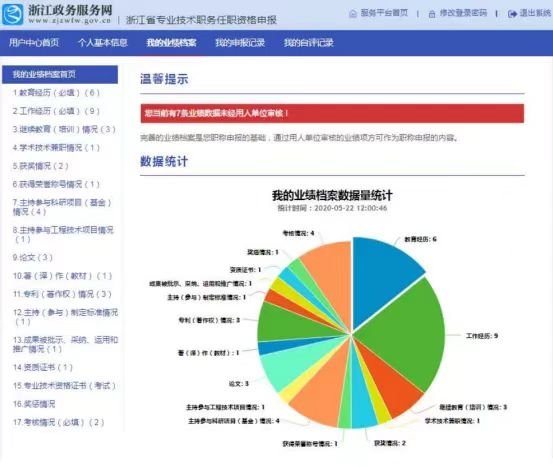 ▲完善业绩档案信息。专业技术人员职称申报应先在省平台上完善个人信息,用人单位、各级主管部门要认真审核,确保信息无误。为促进全市专业技术人员业绩档案库建设,请各级、各单位和专业技术人员将业绩档案维护作为一项日常性工作,每年登录并及时维护有关信息。专业技术人员业绩档案库建设情况将列入全省人社系统绩效考核。