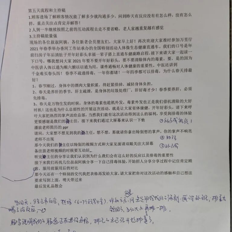 据犯罪嫌疑人代某交代,2019年至今,其在丹江口市城区开了两家养生馆,店铺一般会选择在老年人多的地方,为吸引更多的老年人进店,养生馆会邀请老年人来免费泡脚,在泡脚的同时播放保健品宣传视频,夸大产品功效,如治疗癌症、根治慢性病等奇效给老年人洗脑,并诱骗老年人高价购买。老年人在首次进店被要求登记姓名、手机号、退休单位等信息,根据老年人的经济状况有针对性的推销不同价格的虚假保健品。店内还会经常邀请“专家”来进行健康讲座,在“专家讲师”的话术诱导下,很多老人相信了产品的保健和医疗功效,为了身体健康,不给儿女找麻烦,不惜高价购买,也有不少老年人发现高价保健品无任何功效后,纷纷要求退货并举报。