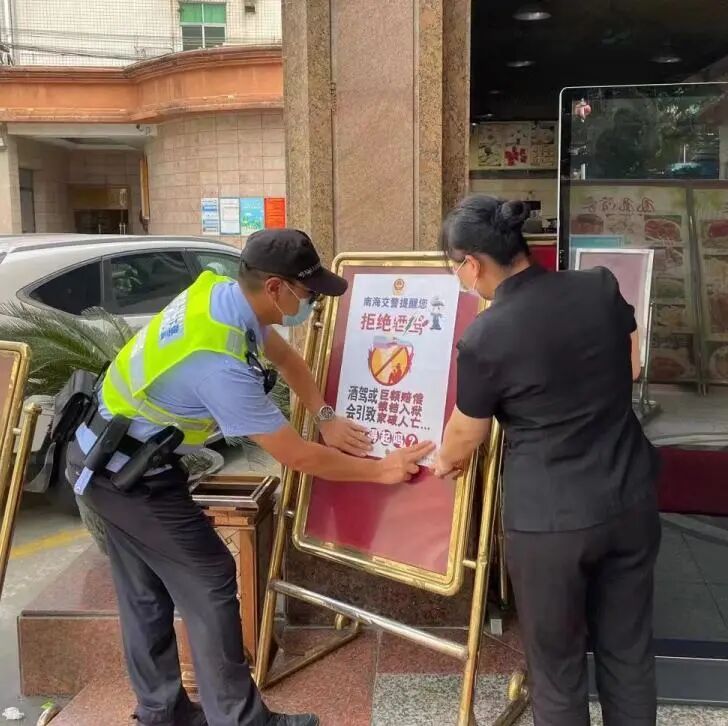 交警部门持续深入开展“拒绝酒驾”公益宣传劝导活动,到餐饮行业、KTV、酒吧等场所张贴宣传画、发放宣传单,并发动场所工作人员及时劝阻纠正酒后驾车行为,从源头筑牢预防酒驾防火墙。