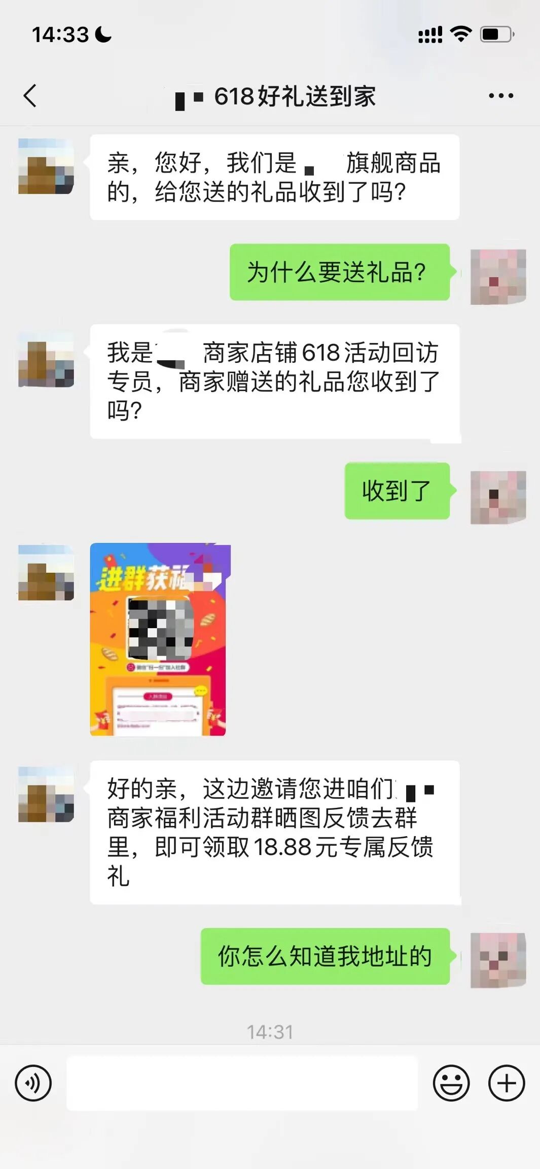 所以,在收到确认不是自己的快递时尽量选择拒收,在遇到客服邀请领取福利时也要谨慎判断。