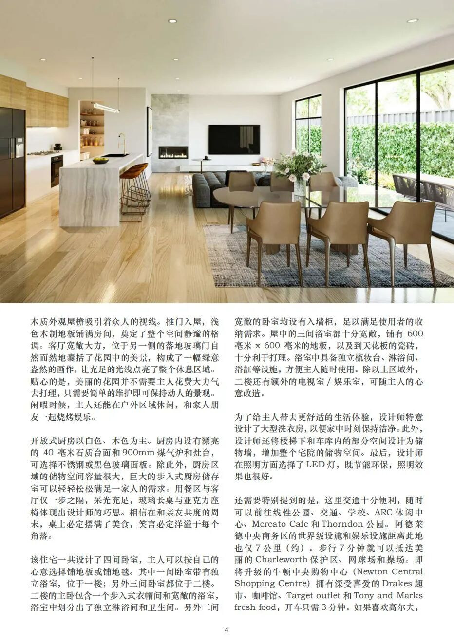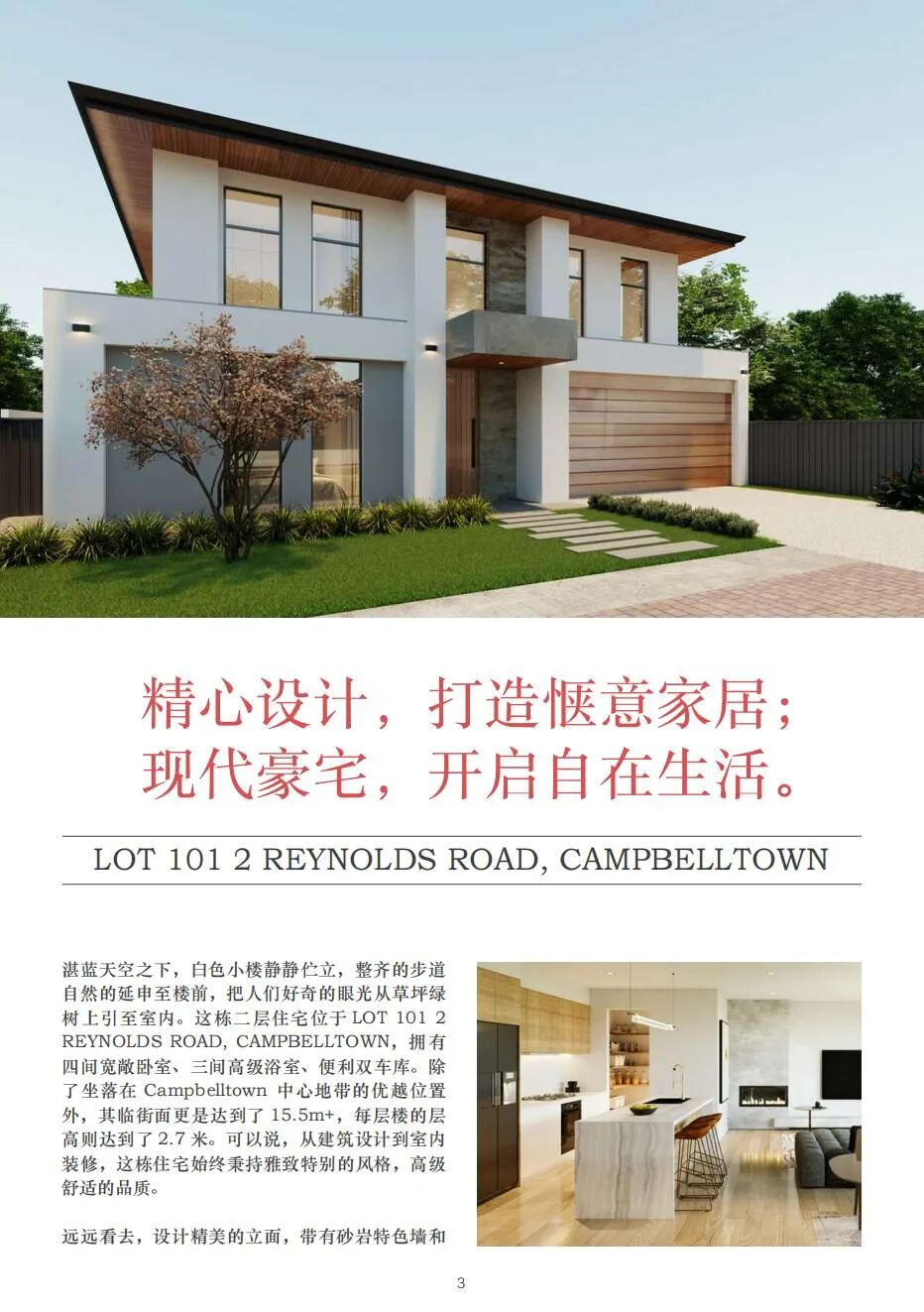 湛蓝天空之下,白色小楼静静伫立,整齐的步道自然的延申至楼前,把人们好奇的眼光从草坪绿树上引至室内。这栋二层住宅位于LOT 101 2 REYNOLDS ROAD, CAMPBELLTOWN,拥有四间宽敞卧室、三间高级浴室、便利双车库。除了坐落在 Campbelltown 中心地带的优越位置外,其临街面更是达到了15.5m+,每层楼的层高则达到了2.7米。可以说,从建筑设计到室内装修,这栋住宅始终秉持雅致特别的风格,高级舒适的品质。