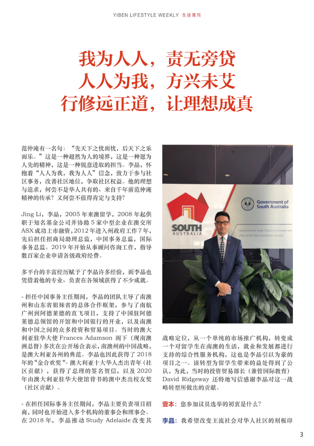 “路漫漫而修远兮,吾将上下而求索。”四十不惑,李晶不再执着个人的得失,而是放眼于众人的利益。他选择了一条注定风雨兼程的道路,但他的付出必定会为他赢得众人的信任与掌声!