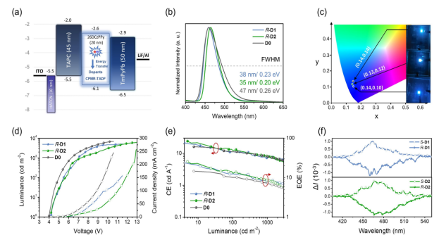 手性多重共振材料和圆偏振发光器件方面最新研究成果