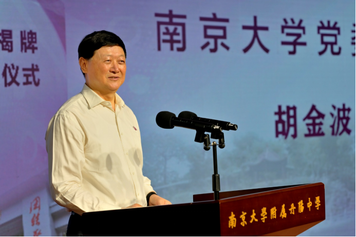 胡金波、顾月华、殷敏、王成明共同为南京大学附属丹阳中学揭牌。